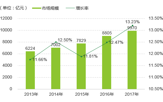 十二五時(shí)期,我國大健康產(chǎn)業(yè)規(guī)模由1.6萬億元增長(zhǎng)到3.2萬億元,實(shí)現(xiàn)規(guī)模翻番,2016年規(guī)模增長(zhǎng)到4.1萬億,2017年達(dá)到4.9萬億;