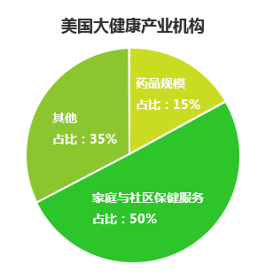 在美國,大健康產(chǎn)業(yè)是三大產(chǎn)業(yè)之一,GDP比重接近17%,2017年大健康產(chǎn)業(yè)規(guī)模超過3.2萬億美元,是全球最大的大健康產(chǎn)業(yè)市場(chǎng),而相比之下,中國大健康產(chǎn)業(yè)雖然近年增長(zhǎng)很快,但是總體量才接近5萬億元,GDP占比6%,總體量與GDP占比都不足美國的1/4,作為全球第一人口大國而言,現(xiàn)有的市場(chǎng)體量是遠(yuǎn)遠(yuǎn)不能夠代表中國市場(chǎng)的潛力的。根據(jù)國家發(fā)展規(guī)劃以及現(xiàn)有的市場(chǎng)增速判斷,到2020年我國大健康產(chǎn)業(yè)的市場(chǎng)規(guī)??梢酝黄?0萬億元,2018-2020年總計(jì)剩余四年時(shí)間將產(chǎn)生超過5萬億元的市場(chǎng)空間,可以說未來四年,大健康產(chǎn)業(yè)將是我國最令人垂涎的市場(chǎng)之一,而從中美的大健康產(chǎn)業(yè)結(jié)構(gòu)對(duì)比來看,中國目前的大健康產(chǎn)業(yè)藥品市場(chǎng)占比超過50%,而在美國藥品市場(chǎng)占比僅僅不到15%,占比達(dá)到是家庭與社區(qū)保健服務(wù),也就是說我國大健康產(chǎn)業(yè)在結(jié)構(gòu)上還遠(yuǎn)遠(yuǎn)未完善,這就導(dǎo)致在未來幾年我國大健康產(chǎn)業(yè)發(fā)展過程中將會(huì)產(chǎn)生大量的市場(chǎng)空白點(diǎn),投資機(jī)遇無限。