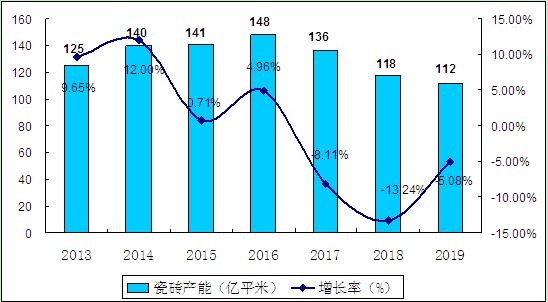 圖表:2013-2019年中國(guó)瓷磚產(chǎn)能總體規(guī)模