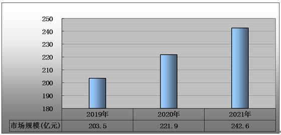 廣東省金融信息化近些年保持了良好的增長(zhǎng)趨勢(shì),2021年廣東省金融信息化市場(chǎng)規(guī)模突破240億元,相比2019年的203.5億元,增長(zhǎng)了9.33%,達(dá)到242.6億元。
