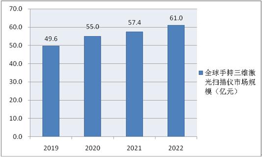 圖表:全球手持三維激光掃描儀市場(chǎng)規(guī)模(單位:億元)