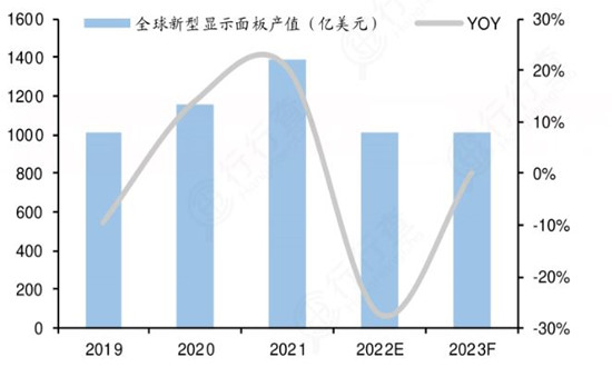 圖表:全球新型顯示面板產(chǎn)值