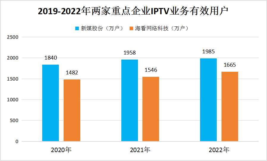 圖表:2019-2022年上半年兩家重點企業(yè)IPTV業(yè)務(wù)有效用戶