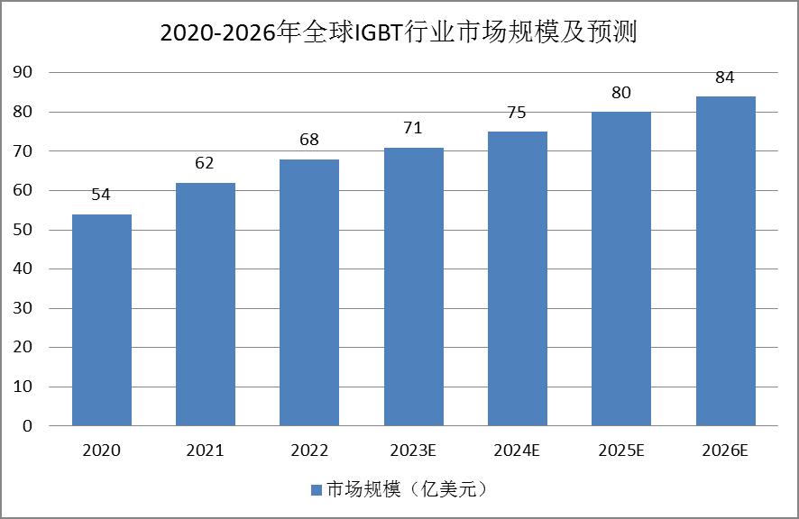 圖表:2020-2026年全球IGBT行業(yè)市場規(guī)模及預(yù)測(cè)