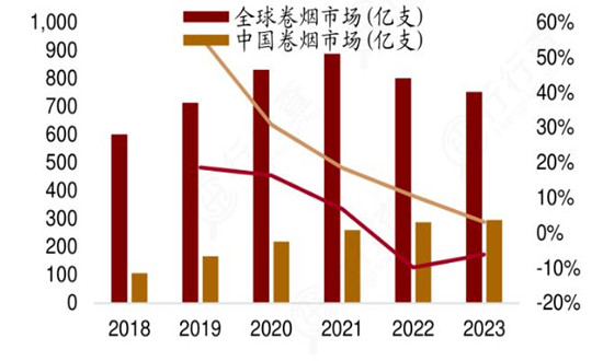 圖表:全球與中國卷煙市場規(guī)模