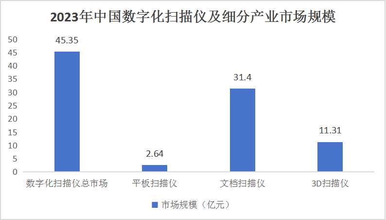 根據中研產業(yè)研究院發(fā)布的《2024-2029年中國掃描儀行業(yè)供需研究及發(fā)展前景分析報告》顯示,2023年中國數字化掃描儀市場規(guī)模達到了45.35億元,其中平板掃描儀市場規(guī)模為2.64億元,文檔掃描儀市場規(guī)模為31.4億元,3D掃描儀市場規(guī)模為11.31億元。從2016年至2023年,中國數字化掃描儀的需求量從51.62萬臺增長到60.05萬臺,而產量則從7.05萬臺飆升至20.38萬臺。這表明,中國掃描儀行業(yè)在供給方面具有較強的生產能力和市場響應能力。