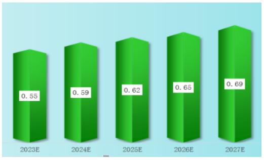 圖表:2023-2027年廣告設(shè)計行業(yè)總資產(chǎn)周轉(zhuǎn)率預(yù)測