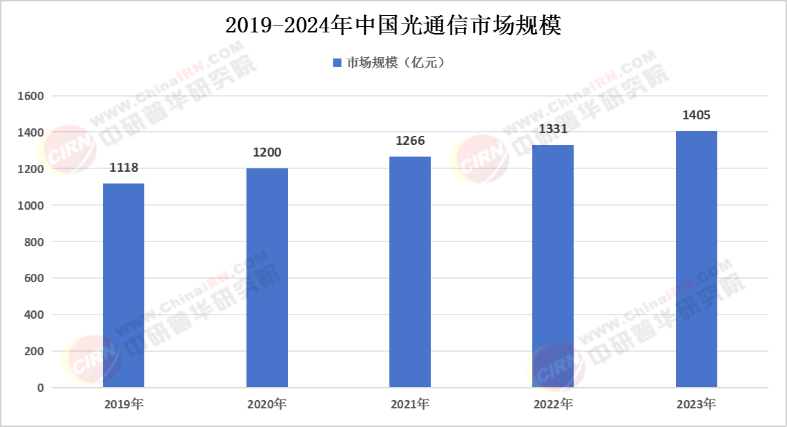 近年來,隨著光通信技術(shù)的不斷進(jìn)步和成本的持續(xù)下降,光通信行業(yè)在全球范圍內(nèi)展現(xiàn)出強(qiáng)勁的發(fā)展勢頭。據(jù)中研普華產(chǎn)業(yè)院研究報告《2024-2029年中國光通信設(shè)備行業(yè)市場全景調(diào)研及投資價值評估研究報告》分析,2022年中國光通信市場規(guī)模約為1331億元,同比增長8.56%,2023年市場規(guī)模進(jìn)一步擴(kuò)大至1405億元。
