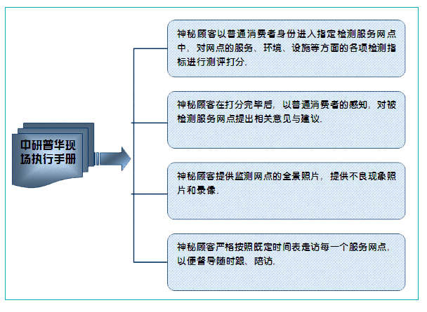 每一位調(diào)查員按照《***神秘顧客執(zhí)行手冊》開展工作,在培訓(xùn)期間,全面掌握《手冊》關(guān)于調(diào)查程序、調(diào)查保密等各方面的精確指導(dǎo)。