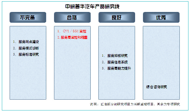 汽車工業(yè)作為經濟發(fā)展的支柱產業(yè)之一;近年來蓬勃發(fā)展,同時競爭環(huán)境也越加激烈,為了協(xié)助汽車行業(yè)做好市場工作,中研普華作為中國市場調研行業(yè)的中堅力量,十年前涉足乘用車,商用車,汽車零部件等不同的領域,協(xié)助企業(yè)把握市場動態(tài)和消費形態(tài),并隨后成立了汽車研究專業(yè)團隊,在滿意度研究、產品研究、品牌與廣告研究等多方面為多家汽車企業(yè)提供市場信息服務工作,受到企業(yè)的一致好評。中研普華針對汽車調研行業(yè)的現(xiàn)狀,優(yōu)化了汽車研究團隊,引進了先進的研究技術,強化了全國執(zhí)行能力,通過系列性的研究;以兩條研究線為基礎,圍繞以下四個客戶需求為目標,為企業(yè)提供數(shù)據(jù)支持。