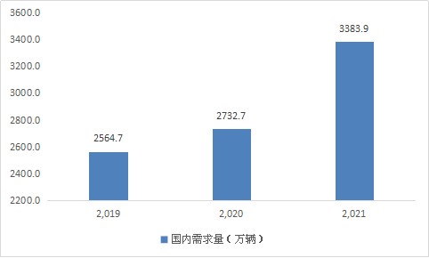 近三年來,我國電動自行車市場的需求量平均值為2893.8萬輛,從需求的變化趨勢來看,我國電動自行車在2019年的需求量為2564.7萬輛,在2020年為2732.7萬輛,在2021年為3383.9萬輛。
