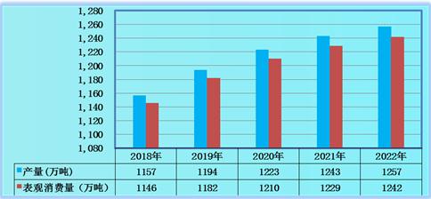圖表:2018-2022年全球超級(jí)食品產(chǎn)量、表觀消費(fèi)量