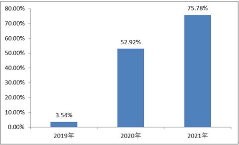 圖表:2019-2021年5G手機(jī)出貨量占全國(guó)手機(jī)總出貨量的比例(單位:%)