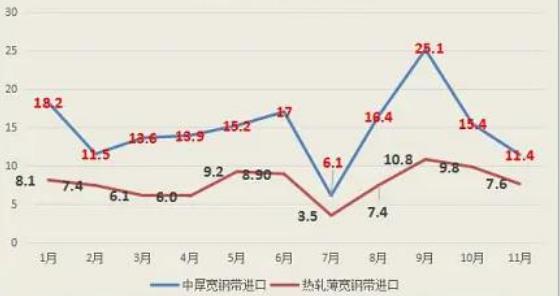 圖表:熱軋卷進(jìn)口分類(lèi)需求走勢(shì)圖