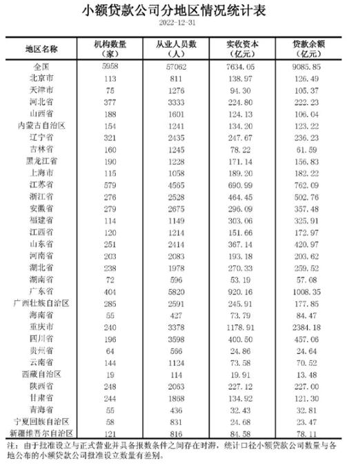 圖表:2022年小額貸款公司分地區(qū)情況統(tǒng)計(jì)表