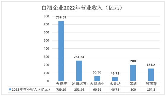 水井坊:2022年實(shí)現(xiàn)營業(yè)收入46.73億元,其中,高檔產(chǎn)品營收45.1億元、高檔品實(shí)現(xiàn)毛利率85.16%;中檔產(chǎn)品營收1.2億元。郎酒:2022年銷售突破200億元。劍南春:2022年?duì)I業(yè)收入154.2億元。
