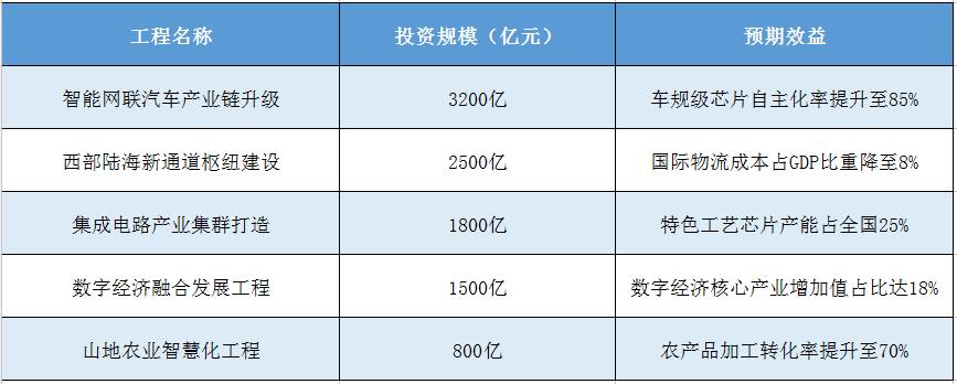 ?表1:重慶“十五五”重大工程投資規(guī)劃(2025-2030)?