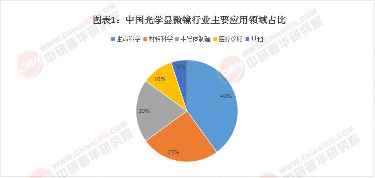 光學(xué)顯微鏡廣泛應(yīng)用于生命科學(xué)、材料科學(xué)、半導(dǎo)體制造、醫(yī)療診斷等領(lǐng)域。其中,生命科學(xué)領(lǐng)域是光學(xué)顯微鏡最大的應(yīng)用市場,占總市場的40%。