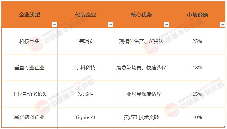 科技巨頭:特斯拉(Optimus)、英偉達(dá)(AI算力平臺(tái))主導(dǎo)高端市場,2025年量產(chǎn)目標(biāo)50萬臺(tái);