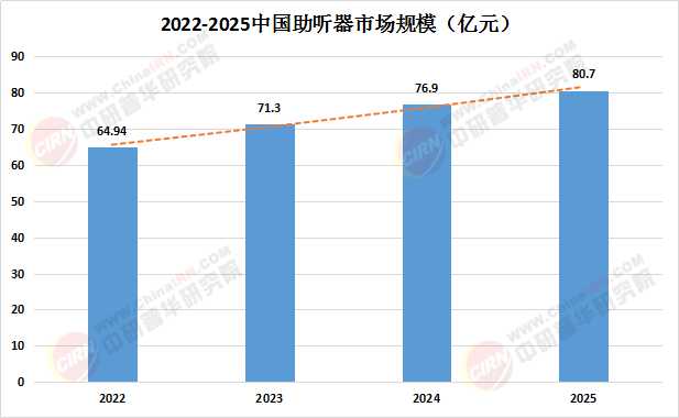 在全球范圍內(nèi),助聽器市場同樣保持著穩(wěn)定增長。據(jù)國際聽力協(xié)會(IHS)研究資料顯示,預(yù)計到2025年全球助聽器市場規(guī)模有望達(dá)到83.3億美元,5年間市場規(guī)模增加28.75%,年平均復(fù)合增長率為5.18%。
