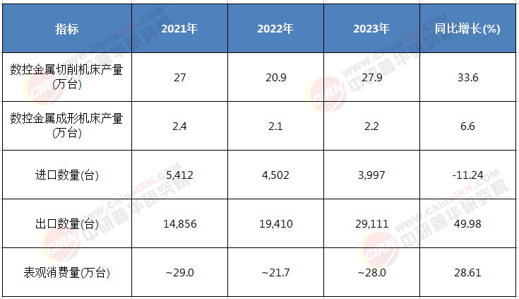 表1:2021-2023年中國數(shù)控機床市場關(guān)鍵指標(biāo)對比
