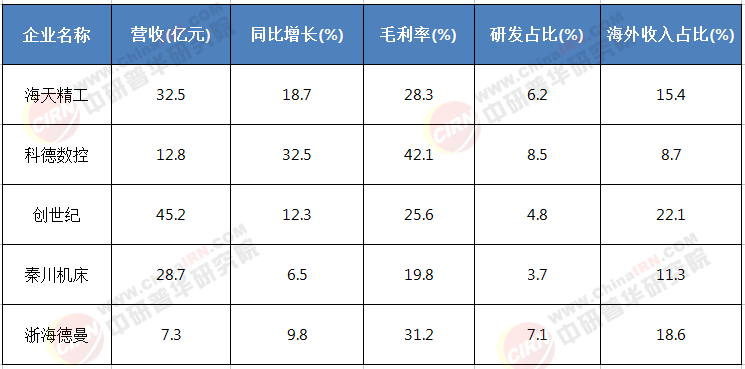 第一梯隊是以科德數(shù)控、海天精工、創(chuàng)世紀(jì)為代表的技術(shù)領(lǐng)先型企業(yè),擁有自主核心技術(shù),產(chǎn)品定位中高端,毛利率普遍維持在30%以上;