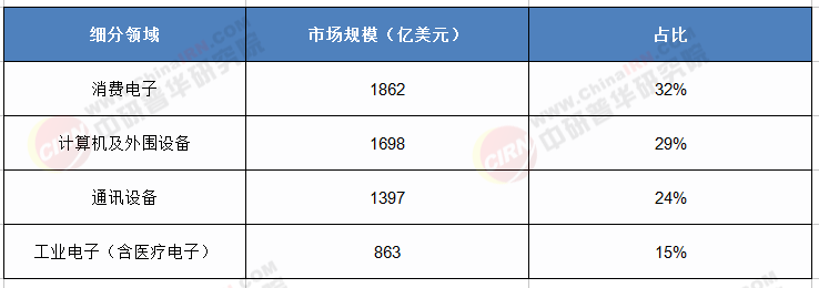 表1 2025年北美電子產(chǎn)品市場細分領域規(guī)模及占比