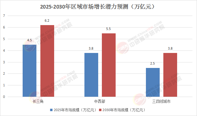 · 中西部地區(qū):在“西部大開發(fā)”和“中部崛起”戰(zhàn)略推動下,城市化進(jìn)程加快。2025年,成都、重慶、武漢等新一線城市市場規(guī)模分別達(dá)1.2萬億元、1.1萬億元、1萬億元,到2030年有望實現(xiàn)年均7%以上的增長。