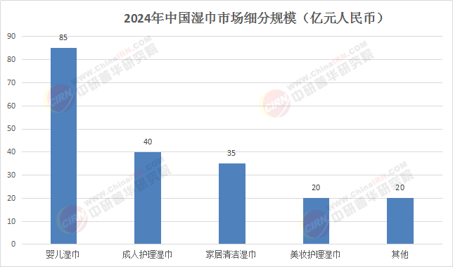 表1:2024年中國濕巾市場細(xì)分規(guī)模