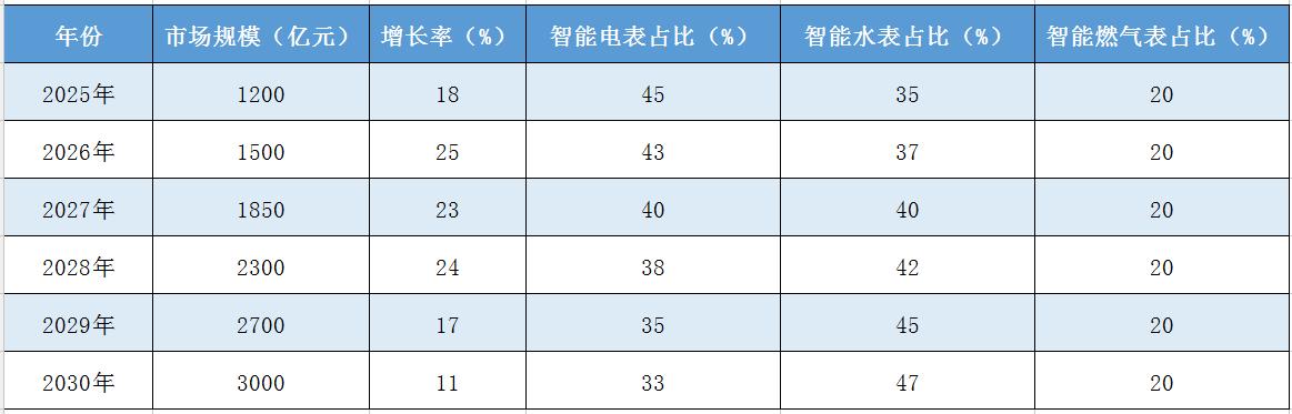 表1:2025-2030年中國智能計(jì)量儀表市場規(guī)模預(yù)測