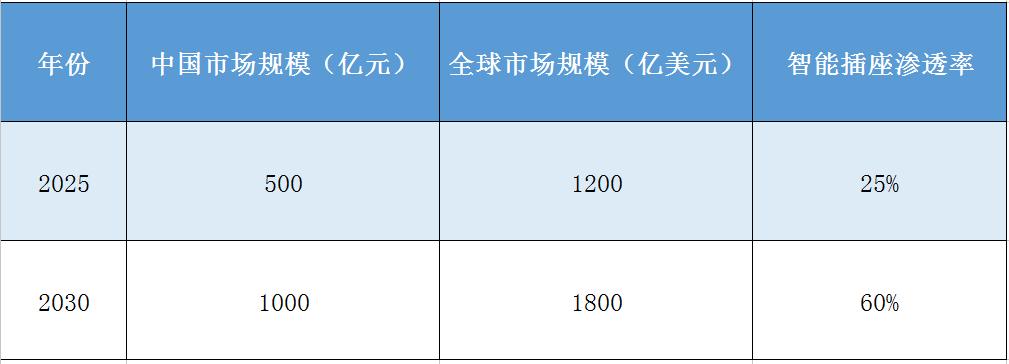智能插座:以年均30%的增速領(lǐng)跑,2025年市場規(guī)模預(yù)計(jì)突破100億元,2030年占比將達(dá)整個(gè)行業(yè)的30%。