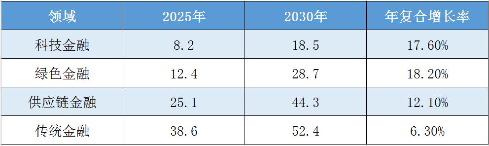 中研普華《2025-2030年版金融產(chǎn)業(yè)園區(qū)定位規(guī)劃及招商策略咨詢報(bào)告》建議,聚焦供應(yīng)鏈金融、綠色金融、科技金融三大賽道。供應(yīng)鏈金融規(guī)模已達(dá)25萬(wàn)億元,未來(lái)五年將以12%年增速擴(kuò)張。建議打造"核心企業(yè)+中小微企業(yè)+金融機(jī)構(gòu)"的產(chǎn)業(yè)聯(lián)盟。
