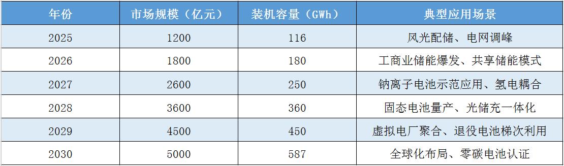 表:2025-2030年中國(guó)儲(chǔ)能鋰離子電池市場(chǎng)規(guī)模預(yù)測(cè)