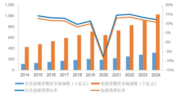 圖:2014-2024年我國(guó)連鎖類(lèi)餐飲市場(chǎng)規(guī)模及增速