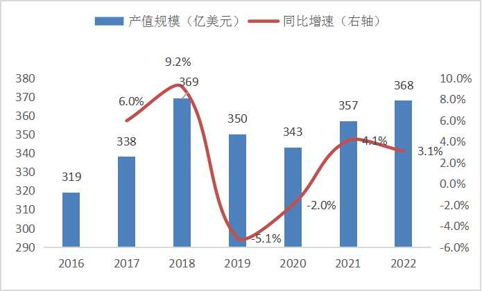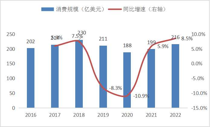 圖:2016-2022年全球軟體家具的消費(fèi)規(guī)模
