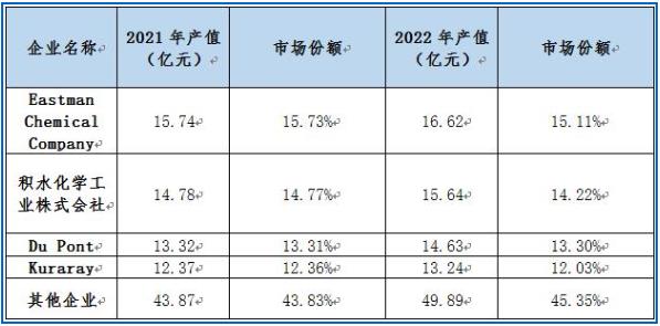 圖表:全球市場建筑PVB薄膜主要廠商產(chǎn)值表