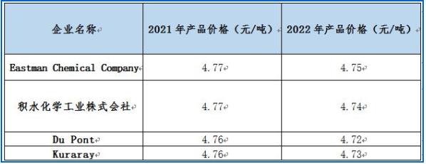 2.1.3全球市場建筑PVB薄膜主要廠商2021和2022年產(chǎn)品價格列表
