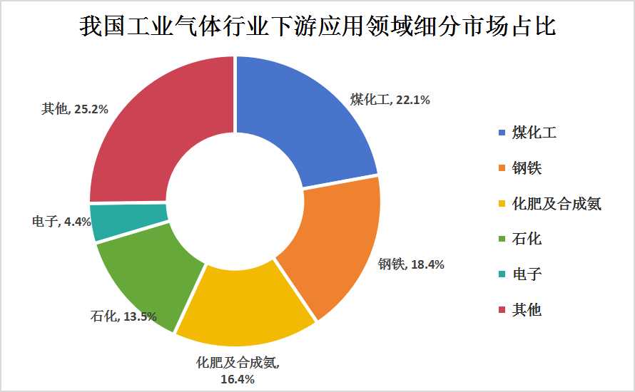 圖表:我國工業(yè)氣體行業(yè)下游應用領域細分市場占比