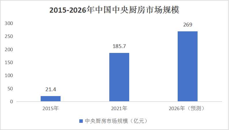 據(jù)統(tǒng)計(jì),中國(guó)中央廚房市場(chǎng)規(guī)模從2015年的21.4億元增長(zhǎng)至2021年的185.7億元,年均復(fù)合增長(zhǎng)率顯著。據(jù)預(yù)測(cè),到2026年,整個(gè)行業(yè)市場(chǎng)規(guī)模將達(dá)到269億元。這一快速增長(zhǎng)主要得益于餐飲行業(yè)的蓬勃發(fā)展和消費(fèi)者對(duì)食品安全、品質(zhì)及便捷性的需求增加。
