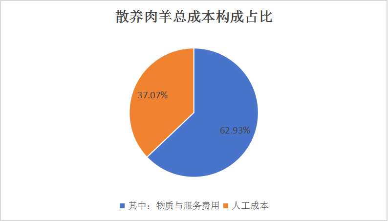 從成本構(gòu)成來看,散養(yǎng)肉羊的總成本主要由生產(chǎn)成本構(gòu)成,其中物質(zhì)與服務(wù)費(fèi)用占62.93%,人工成本占37.07%。物質(zhì)與服務(wù)費(fèi)用中,仔畜費(fèi)和飼料費(fèi)是主要的支出項(xiàng)目,分別占比40.11%和20.22%。人工成本的增長尤為顯著,年均復(fù)合增長率約為3.73%,增速明顯快于物質(zhì)與服務(wù)費(fèi)用。