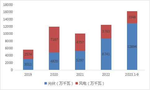 圖表:中國光伏和風(fēng)電新增裝機(jī)量