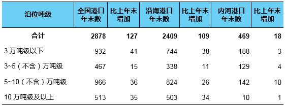 根據(jù)《交通運輸行業(yè)發(fā)展統(tǒng)計公報》,截至2023年底,中國港口擁有生產(chǎn)用碼頭泊位22023個,比上年末增加700個。其中萬噸級及以上泊位2878個,比上年末增加127個。年末全國萬噸級及以上泊位中,專業(yè)化泊位1544個,比上年末增加76個;通用散貨泊位664個,增加27個;通用件雜貨泊位447個,增加13個。