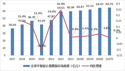 圖:2017-2027年全球平板顯示掩膜版行業(yè)市場(chǎng)規(guī)模及預(yù)測(cè)
