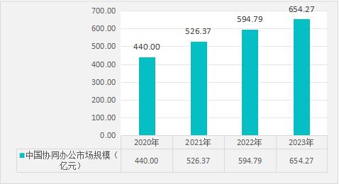 圖表:2020-2023年中國協(xié)同辦公市場規(guī)模(億元)