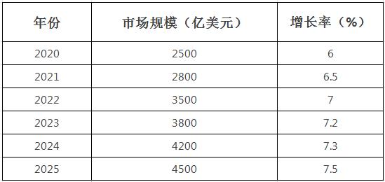 圖1:全球醫(yī)用耗材市場規(guī)模及預(yù)測(2020-2025)