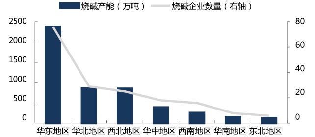 圖表:我國各地區(qū)燒堿產(chǎn)能及企業(yè)數(shù)量(截至2024年底)