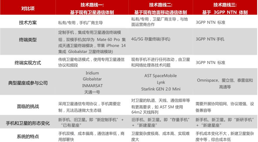 當(dāng)前,手機(jī)直連衛(wèi)星技術(shù)領(lǐng)域逐漸形成了三條具有差異化特點(diǎn)的發(fā)展路徑。
