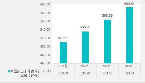 2021-2024年中國(guó)礦山工程建設(shè)行業(yè)市場(chǎng)規(guī)模(億元)