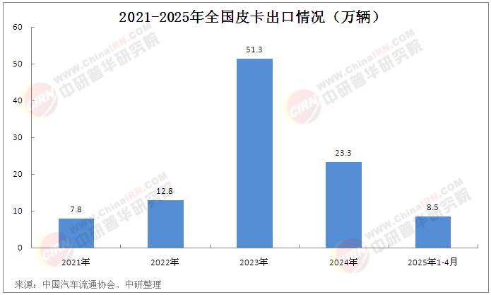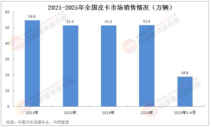 中國汽車流通協(xié)會數(shù)據(jù)顯示,2025年1-4月全國皮卡生產(chǎn)18.4萬輛,同比增長12.2%。2025年1-4月份皮卡市場銷售18.8萬輛,同比增長9%,處于歷史最高位。