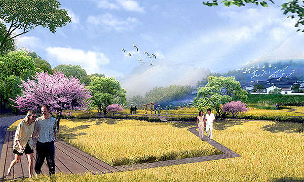 田園綜合體通常位于地形豐富多變、景觀資質(zhì)良好的地段,往往依托觀賞型農(nóng)田、瓜果園,觀賞苗木、花卉展示區(qū),濕地風(fēng)光區(qū),水際風(fēng)光區(qū)等等。可以使游人身臨其境的感受田園風(fēng)光和自然美景,使游人放松身心、體會(huì)農(nóng)業(yè)魅力。